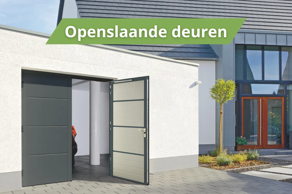 Openslaande Garagepoorten: Openslaande garagepoorten hebben een klassieke uitstraling en bieden eenvoudige toegang zonder dat de hele deur hoeft te worden geopend.